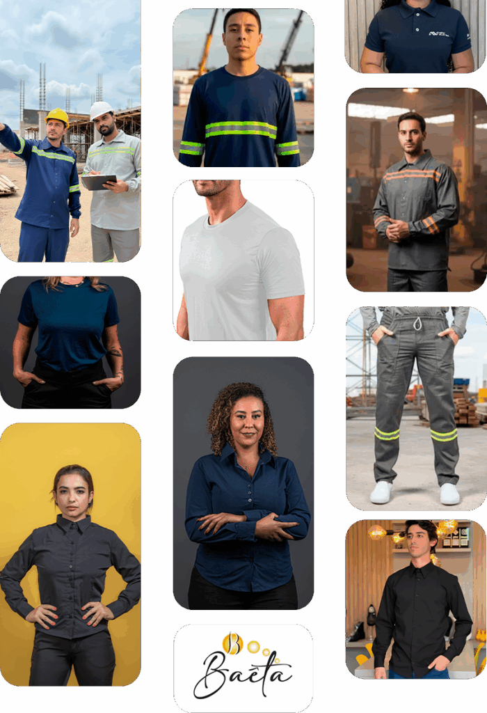 A Baêta Uniformes é mais do que uma empresa de confecção de uniformes; somos parceiros na construção da identidade e do profissionalismo das marcas. Especializados em soluções que combinam conforto, durabilidade e estilo, atendemos a diversos segmentos com produtos que valorizam o dia a dia de trabalho.